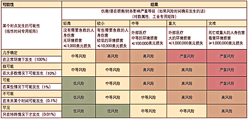 04危险废物的风险评估 上述已经提到两个危险废物处置引起的安全事故,所以危险废物在日常工作中是存在一定的事故风险的,因此需要对其进行风险的评估,当然,风险评估的方法有很多,比如风险矩阵法、安全检查表法等,这里简单介绍通过风险矩阵法对危险废物风险评估。风险矩阵法,是一种能够把危险发生的可能性和伤害的严重程度综合评估风险大小的定性的风险评估分析方法。最后形成风险矩阵图,根据不同的风险等级采取相应的措施。