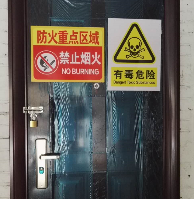 在这次检查中,总体情况良好。煤气、危化试剂的使用人员均具备相关的安全使用管理知识,安全意识牢固,能够按照相关制度,规范的使用和管理危险物品;门窗、水电路使用情况良好,没有发现老化损坏情况;消防器材配备齐全,消防通道畅通无杂物;应急照明灯安装到位,状况良好,可以正常使用。但也存在一些问题,如化学试剂摆放不到位,试剂库没有明显标识等。面对存在的问题,检查小组立行立改,已将化学试剂统一集中管理,对试剂库进行明显标识,实 行了"双人双锁"管理。